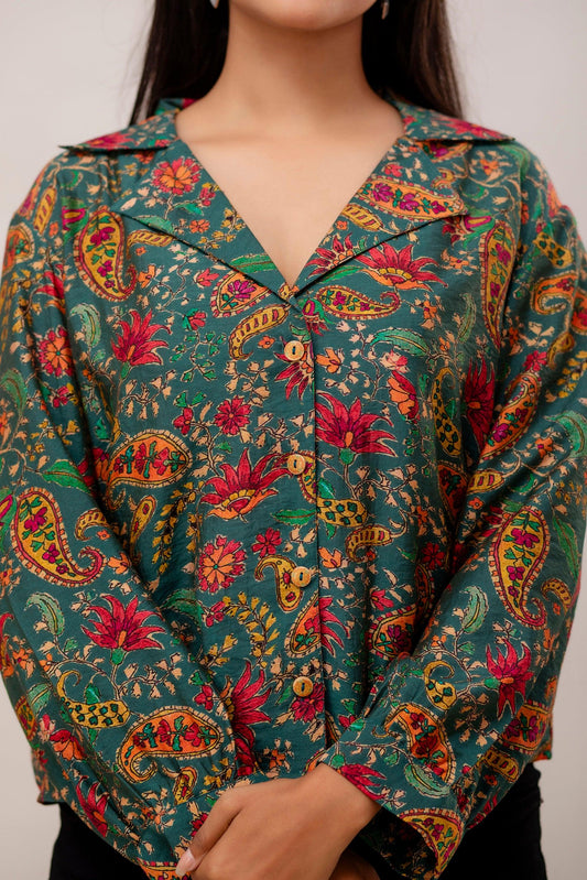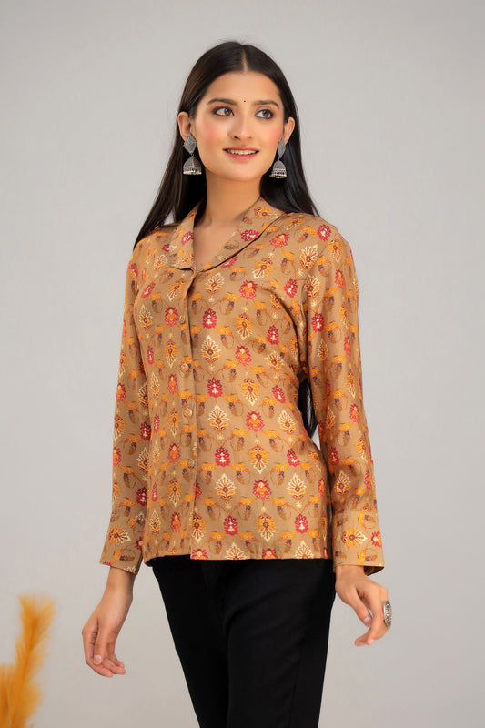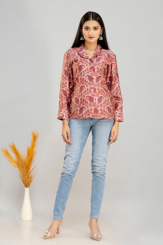 Wine Collar Yoke Foil Print Kurta Pant Set