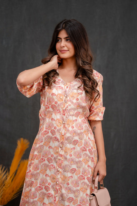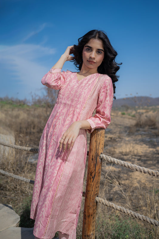 Pink Muslin Pintucks Detail Kurti Pant Set