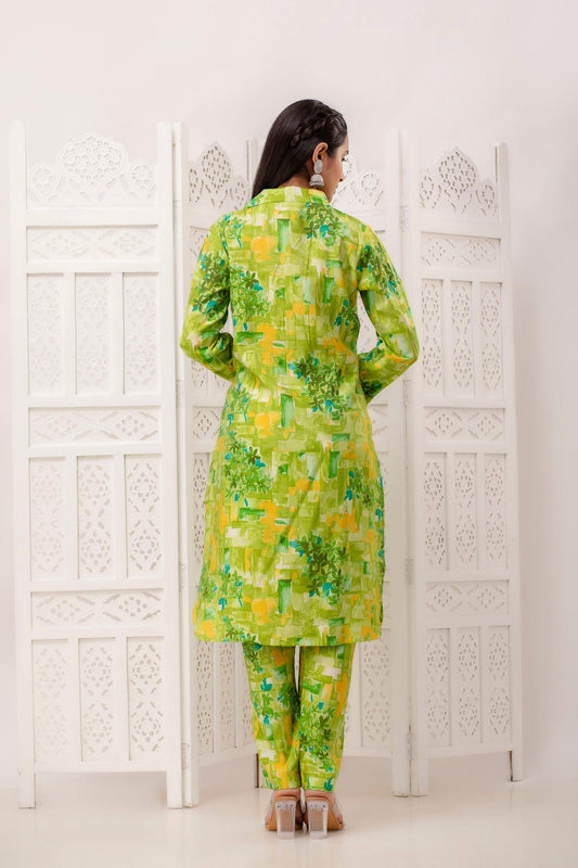 Neon Green and Yellow Kurta Pant Co-Ord Set