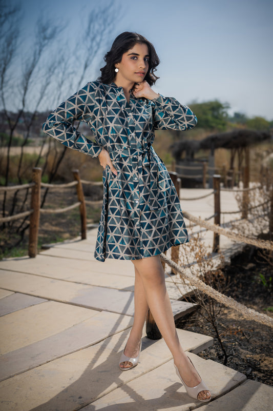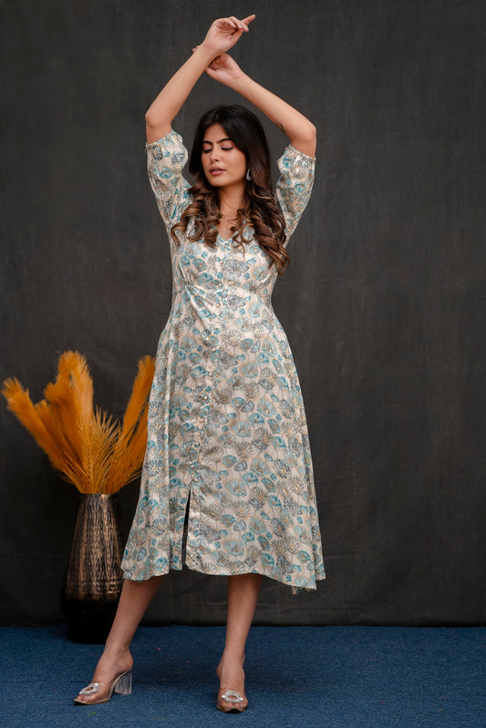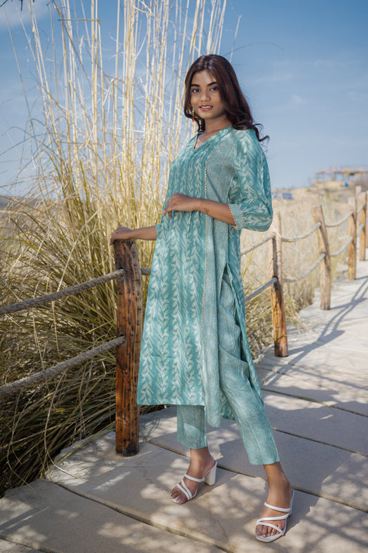 Blue Collar Yoke Foil Print Muslin Kurta Pant Set