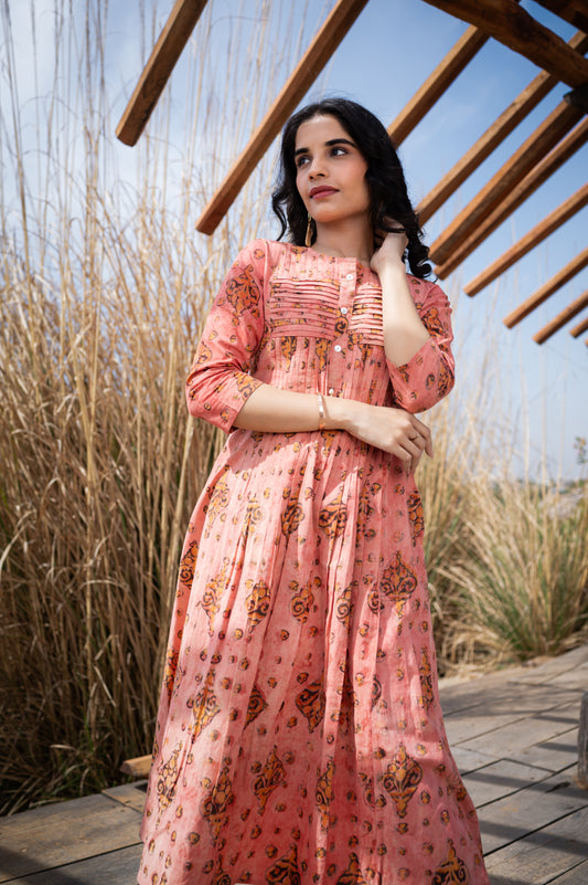 Pink Muslin Pintucks Detail Kurti Pant Set