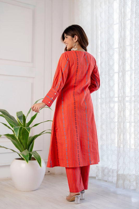 Sold outBurnt Orange Hand-weaved Kurta Set